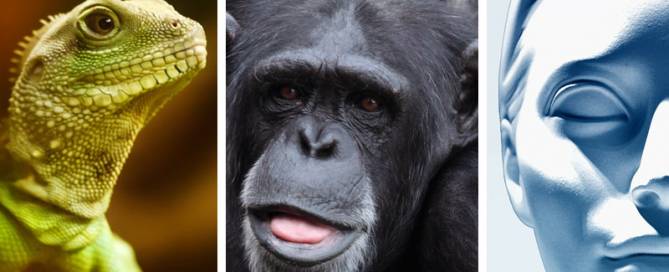 El primer cerebro es el cerebro reptiliano (instintivo). El que le sigue es el cerebro de los primeros mamíferos o límbico (emocional), y por último encontramos el nuestro, el cerebro de los mamíferos recientes o neocórtex (intelectual).